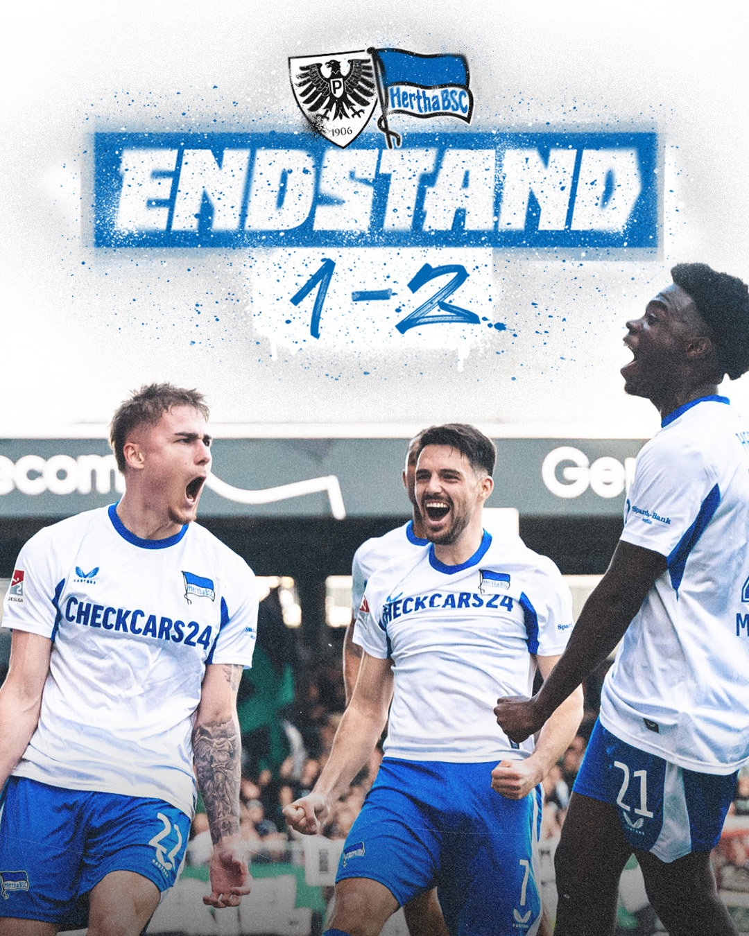 Was für ein Schlussakt dieses Nachmittages: Hertha gewinnt in letzter Sekunde doch noch in Münster! Auf den Kanälen folgen gleich Spielbericht, Stimmen und Pressekonferenz. Genießt den Sieg und euren Restsonntag, Herthanerinnen und Herthaner - Ha Ho He!