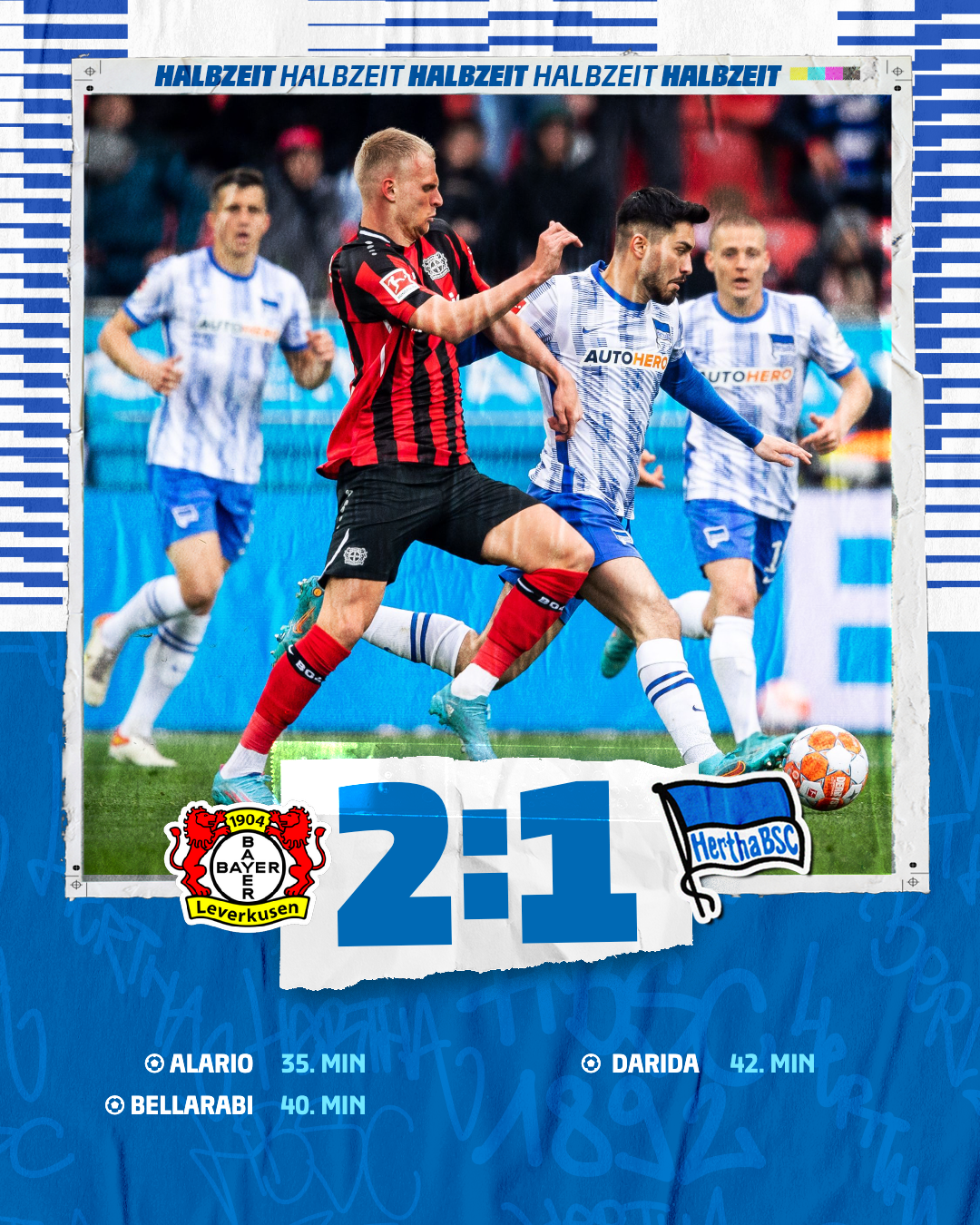 Leverkusen zwar mit deutlich mehr Ballbesitz (69 Prozent), aber klare Abschlüsse konnten unsere Jungs bis hierhin recht gut unterbinden. Jetzt muss offensiv was von unseren Spreeathenern kommen.